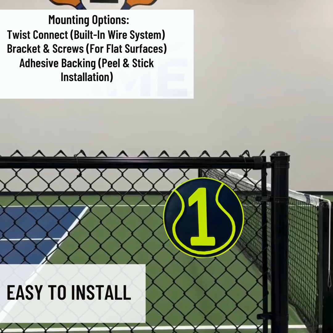 Tennis Court Number Marker – 6"x6" or 11"x11", Easy Install, All-Surface Mount, All-Weather, Non-Rusting PETG, For Facility or Club